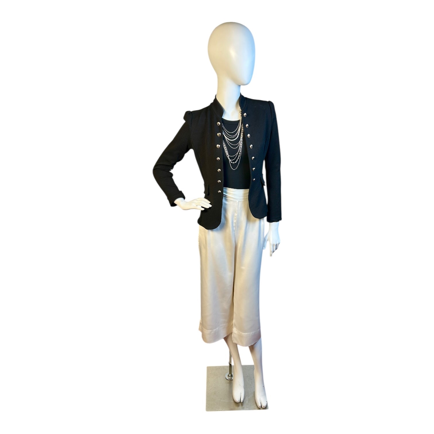 Un blazer que grita “protagonismo” con elegancia. Su inspiración militar lo convierte en una prenda poderosa que estiliza la figura gracias a su corte entallado y su construcción marcada en hombros, mientras que su tela ligeramente elasticada permite un calce cómodo sin perder estructura. Ideal para elevar cualquier look: desde un jean y remera básica, hasta un outfit más formal con pantalón de vestir o falda lápiz. Sumale collares largos o aros llamativos si querés potenciar el aire sofisticado con un toque personal.