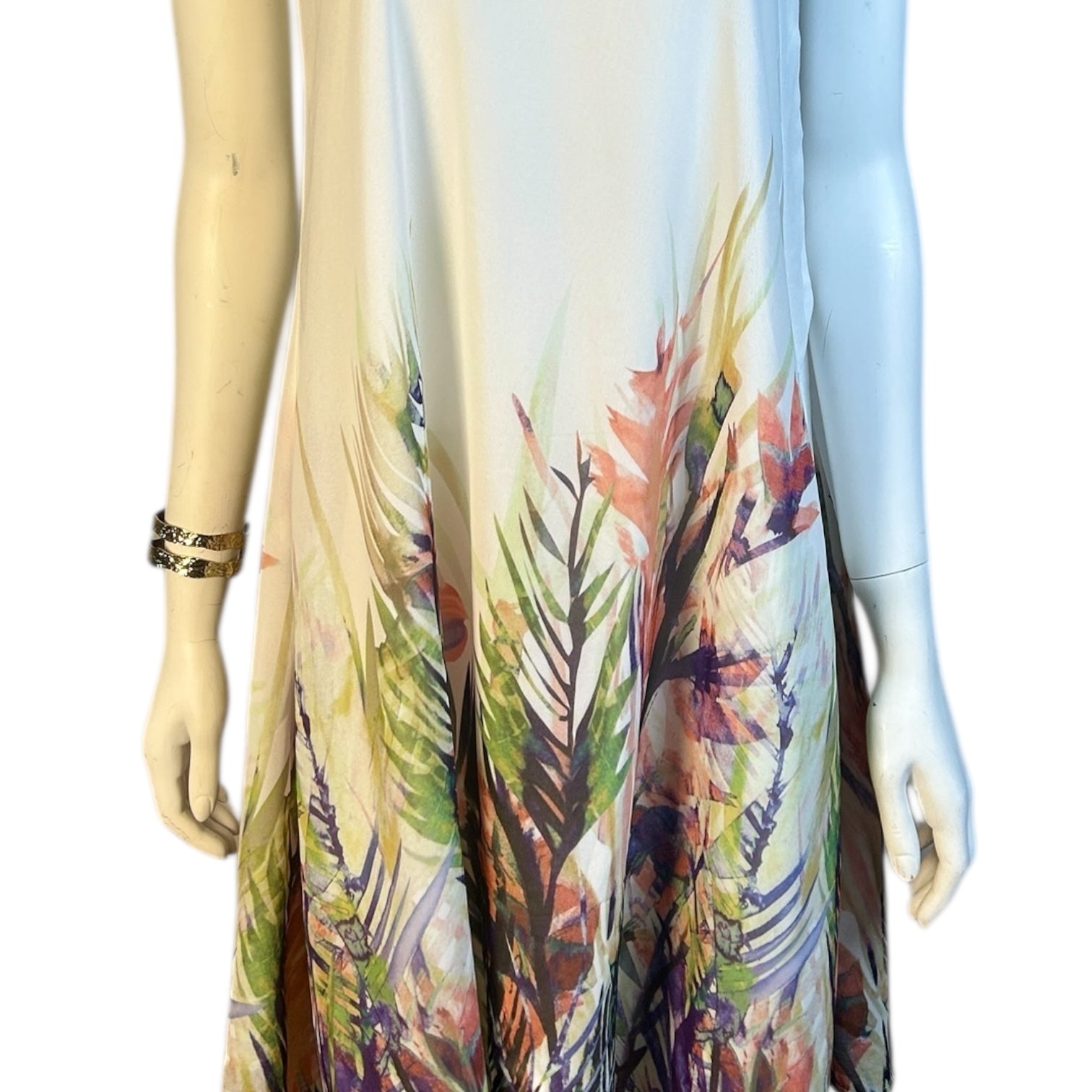 Este vestido ligero presenta un diseño halter con lazo decorativo que resalta el cuello y los hombros. Su estampado botánico en tonos verdes, morados y tierra aporta un aire natural y alegre. Ideal para días soleados, vacaciones o salidas informales con un toque chic.