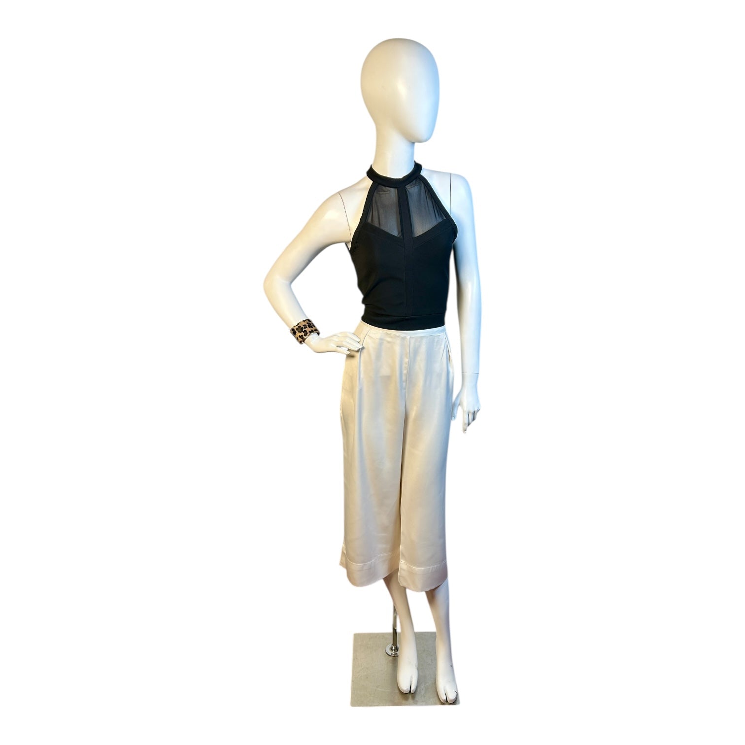 Corte: Cropped, de pierna ancha tipo palazzo, con cintura media-alta y caída fluida