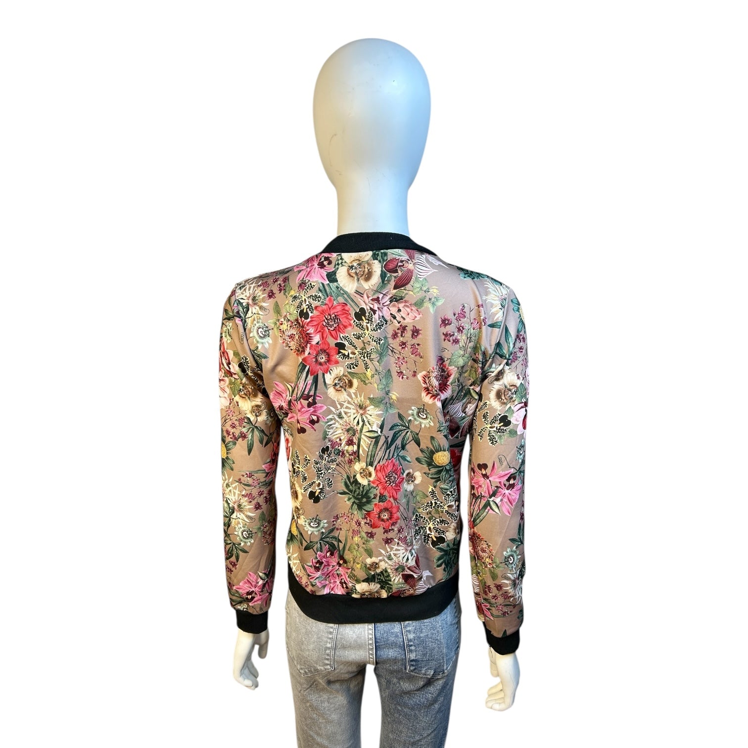 Esta bomber es una mezcla perfecta entre lo romántico y lo urbano. El brillo sutil del satén se combina con flores exuberantes de aire oriental para crear una prenda que roba miradas sin esfuerzo. El corte clásico de bomber y los detalles en negro le dan un toque street y contemporáneo, ideal para balancear la dulzura del estampado.